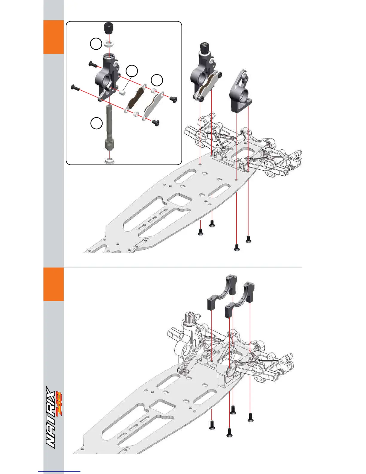 Serpent Natrix 748 - Rear Assembly: Steering Blocks and Suspension; Rear Assembly: Brake Caliper Mount