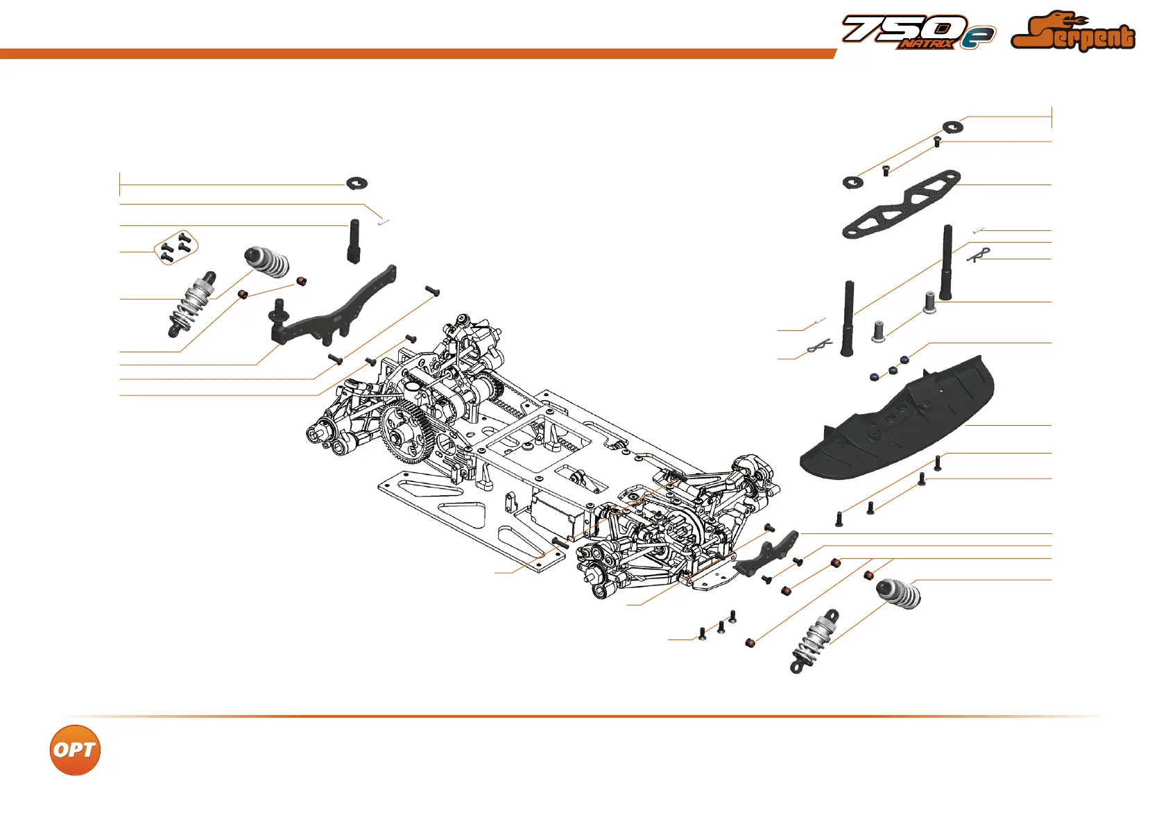 Serpent Natrix 750-E - BUMPER SHOCKTOWER EXPLODED VIEW