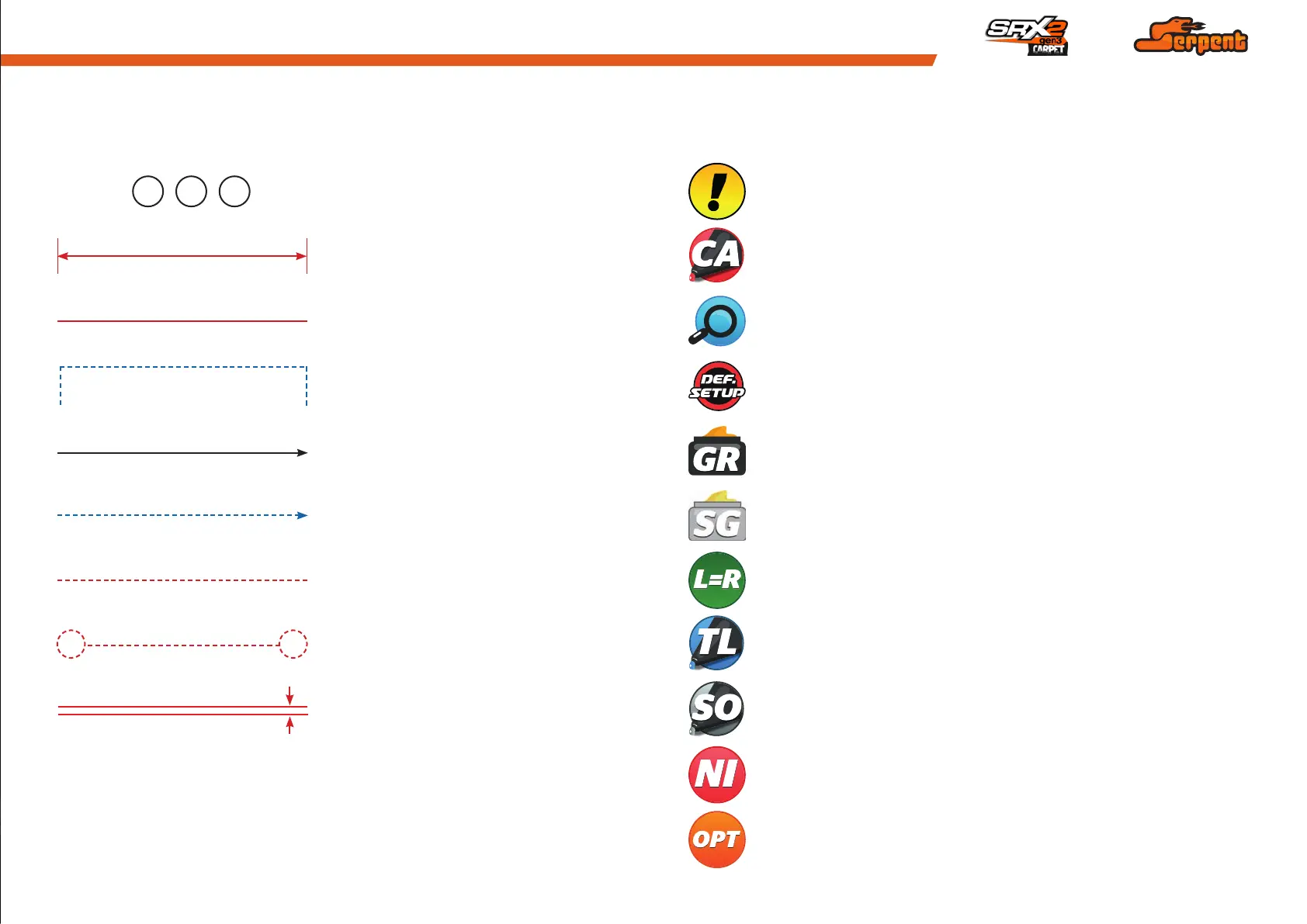 Gap between two items Silicone oil: use the indicated silicone oil for the shocks and differentials.