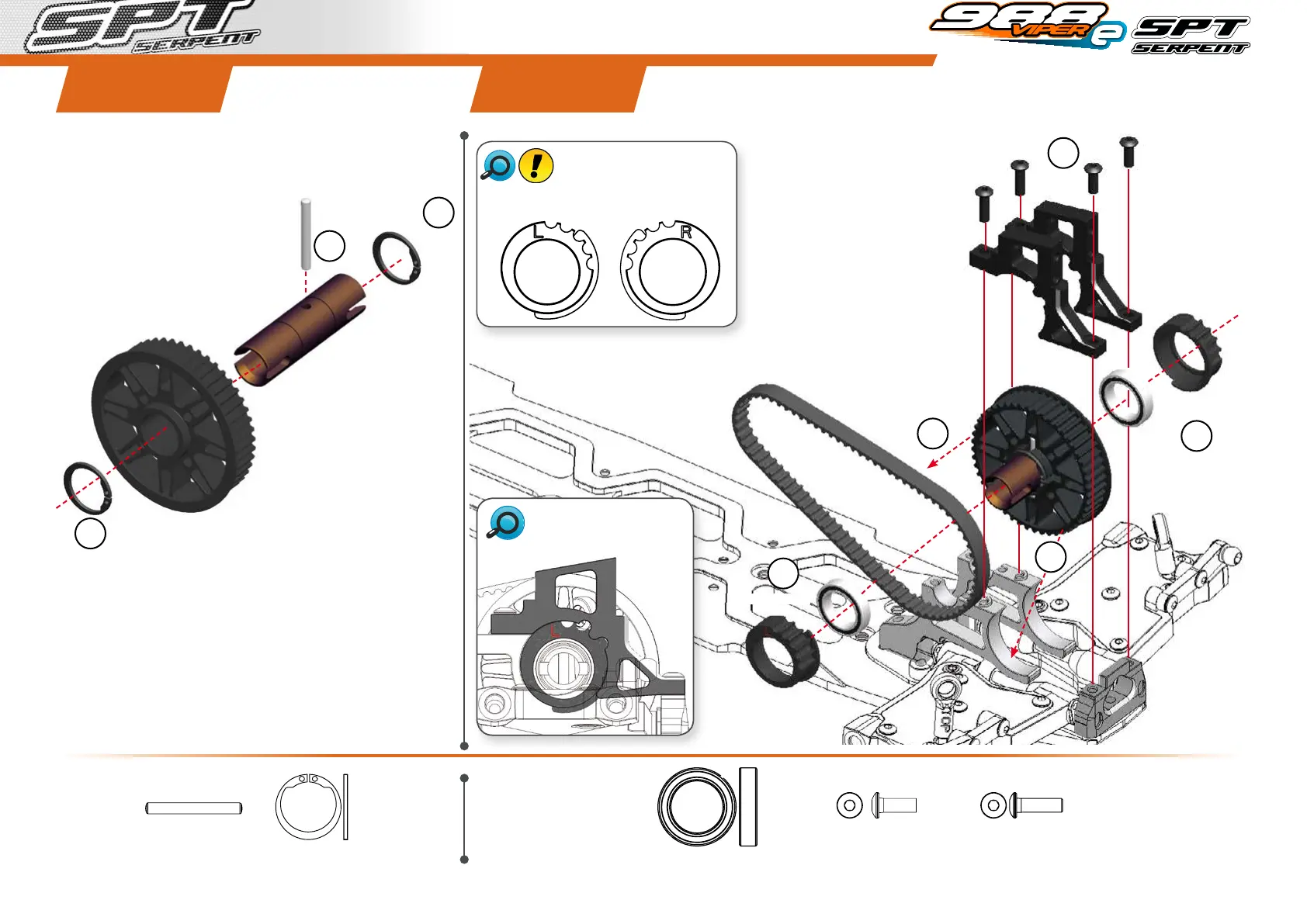 Serpent Viper 988e - Step 6: Rear Axle Excenters Note; Step 7: Rear Belt Tension Adjustment