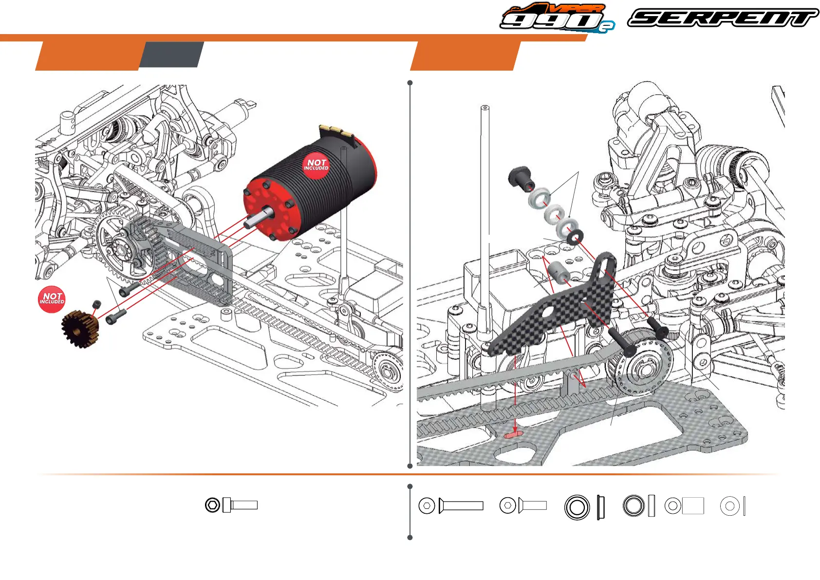 Serpent VIPER 990e - Final Assembly; Motor Installation; Drive Belt and Brace Assembly