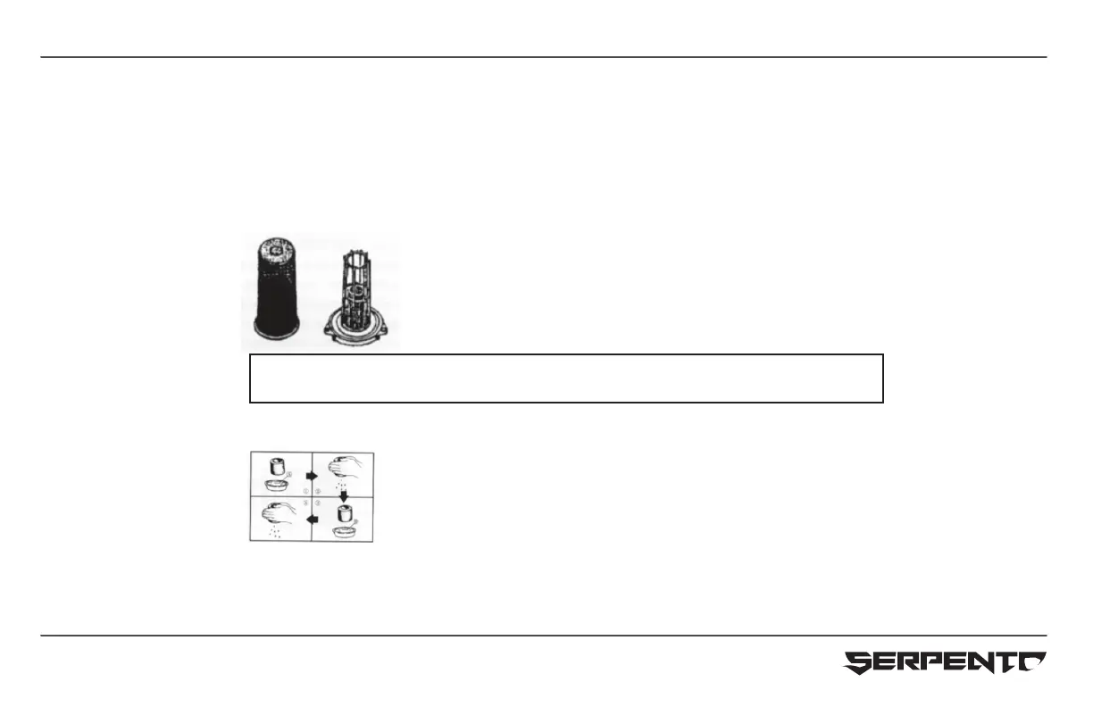 3. Introduzca el filtro a un recipiente con aceite y sumérjalo. Luego saque el aceite presionando el filtro.
