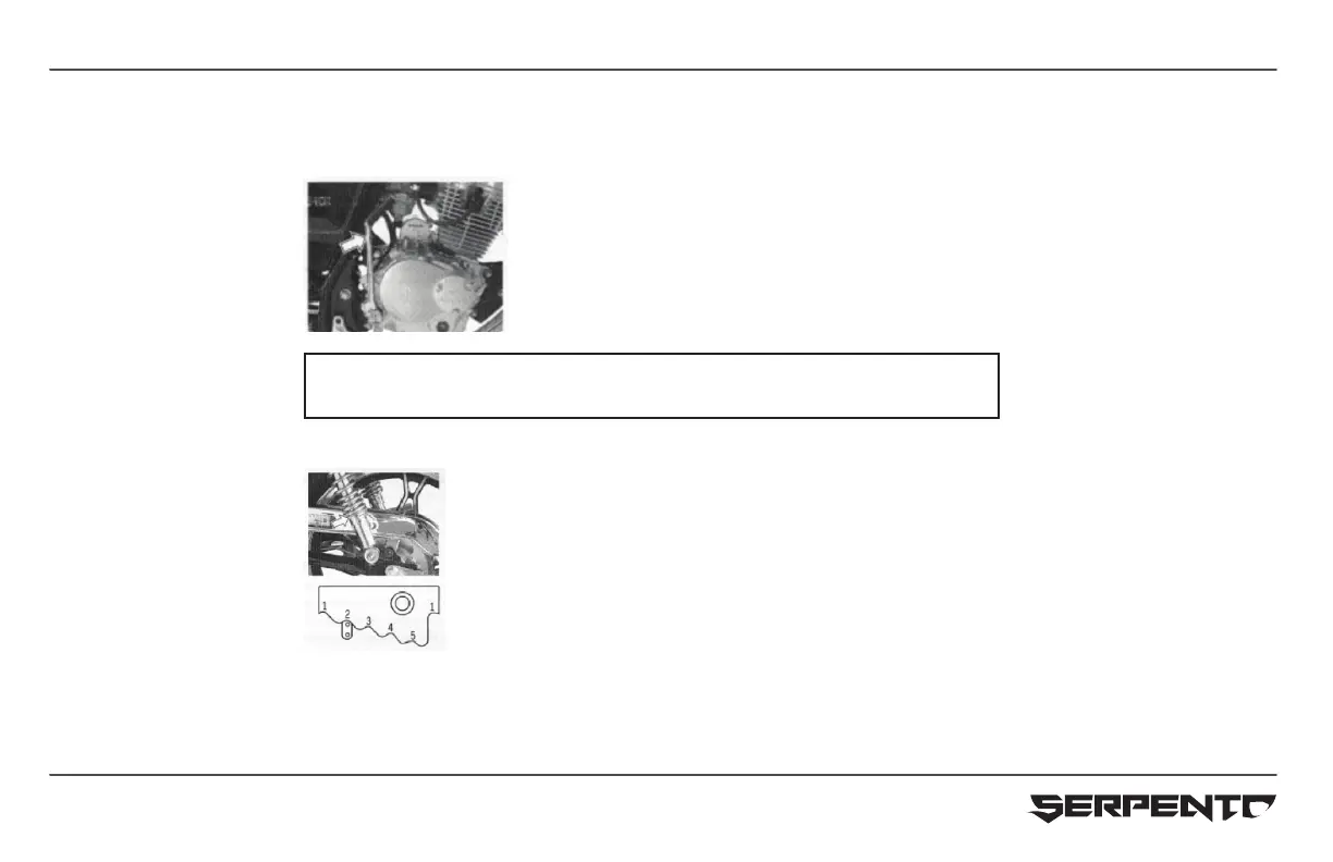 Fasten motorcycle by center stand, rotating the spring regulator by screw driver on the position you want.