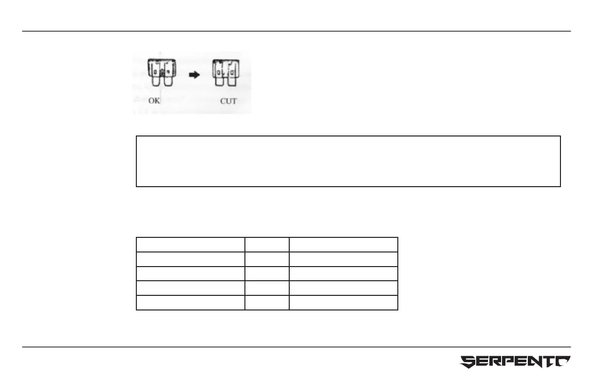 Use the fuse with designated am peres for replacement. Never substit¬ute for the burned fuse with aluminum foil, copper win, etc.