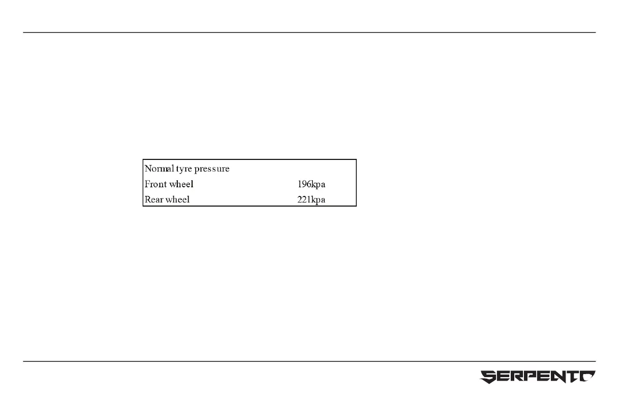 • Do not overload to avoid tire explosion. If there is Normal Tire Pressure in it: