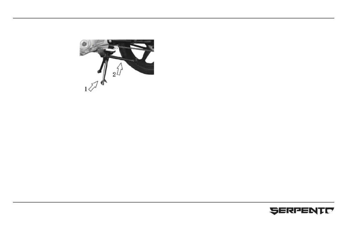 Este modelo de motocicleta viene equipada con un soporte central (1) y un soporte lateral (2). Cuando quiera apoyar la motocicleta sobre el