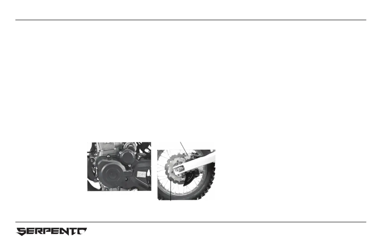 5. When the rear wheel i changed in position and the chai adjusted, the free operatin movement of the rear brake ped will be affected, which