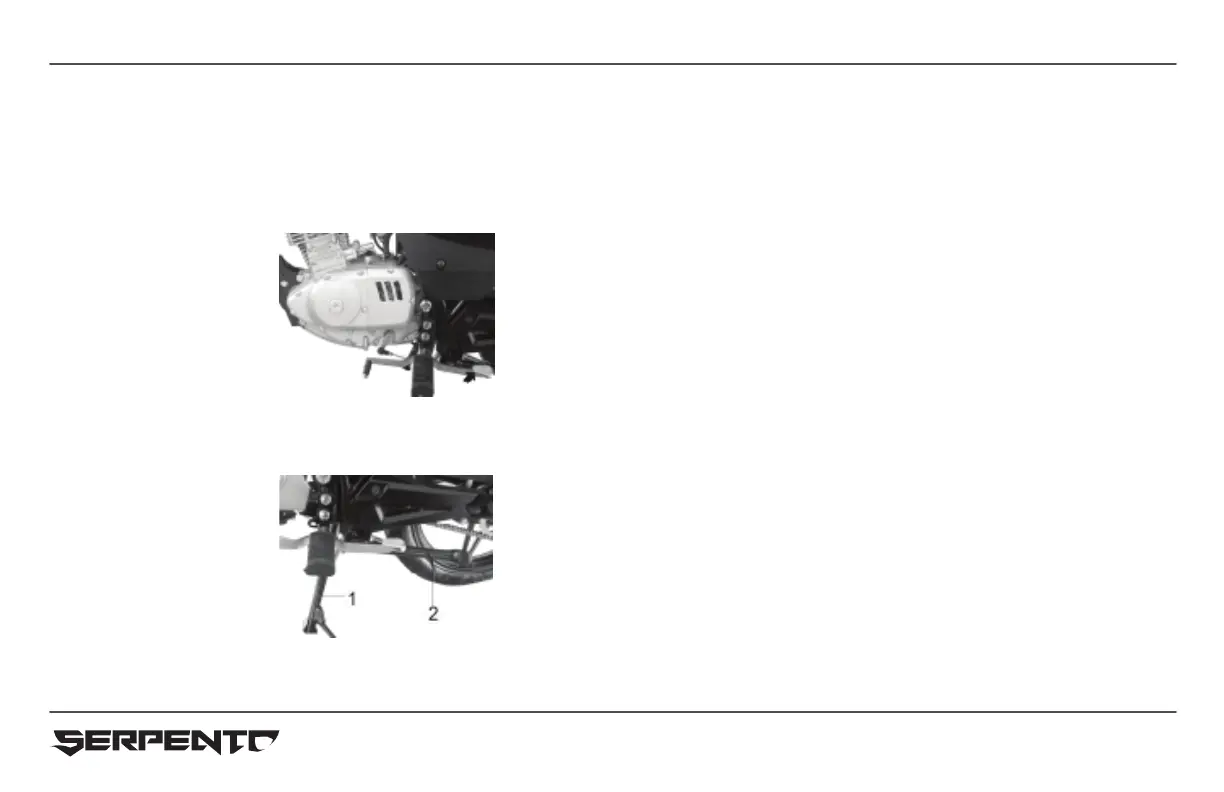 The vehicle is equipped with two stands, a center stand (1) and a side stand (2).