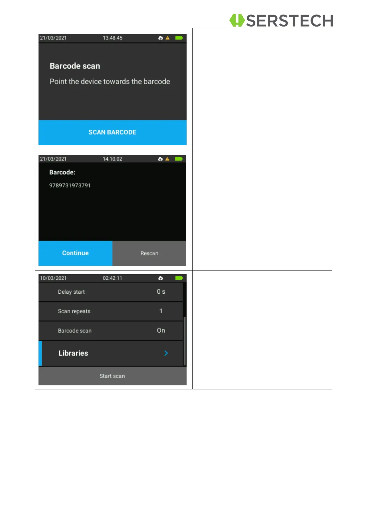 OK button when Scan Barcode option is