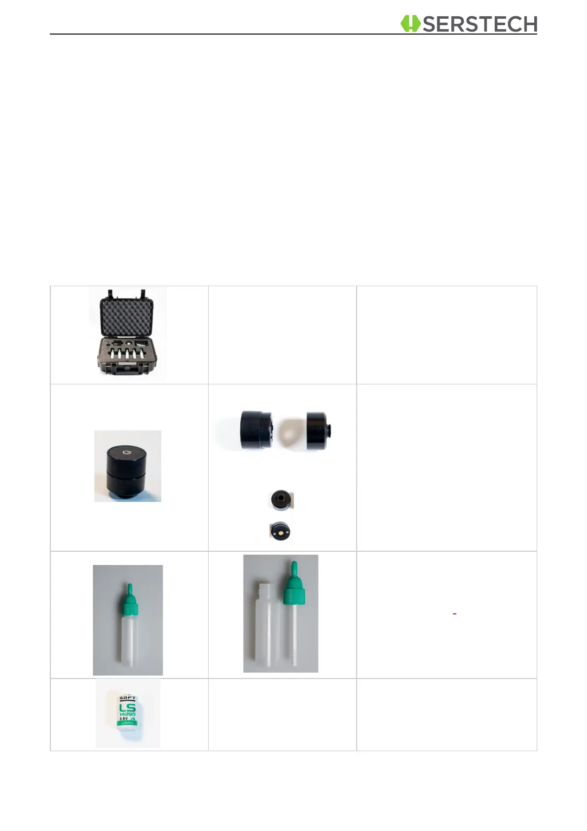 Below, you will find listed all accessories included into the SERS kit