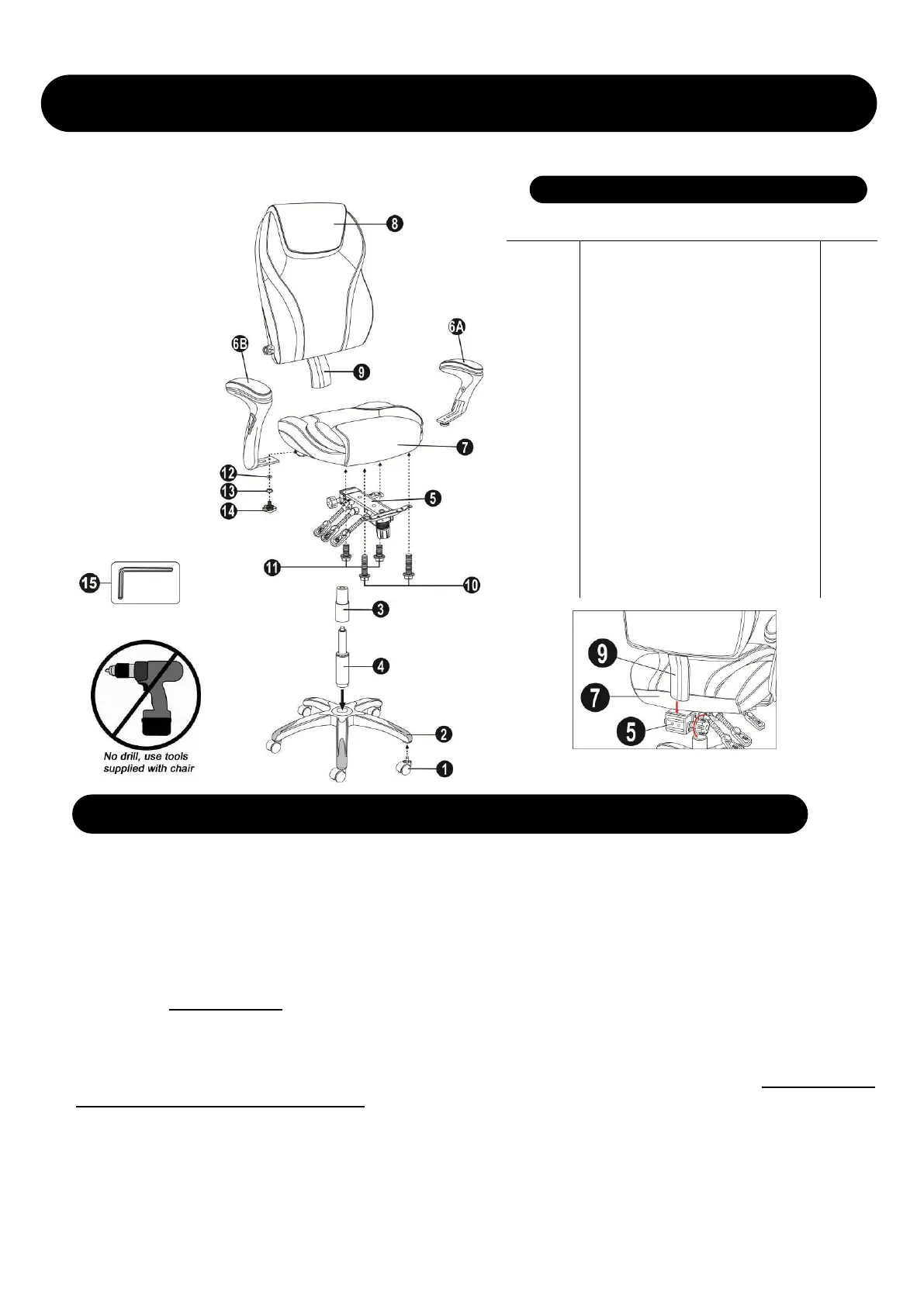 ATTENTION: Be certain that all screws are fully tightened before using chair.