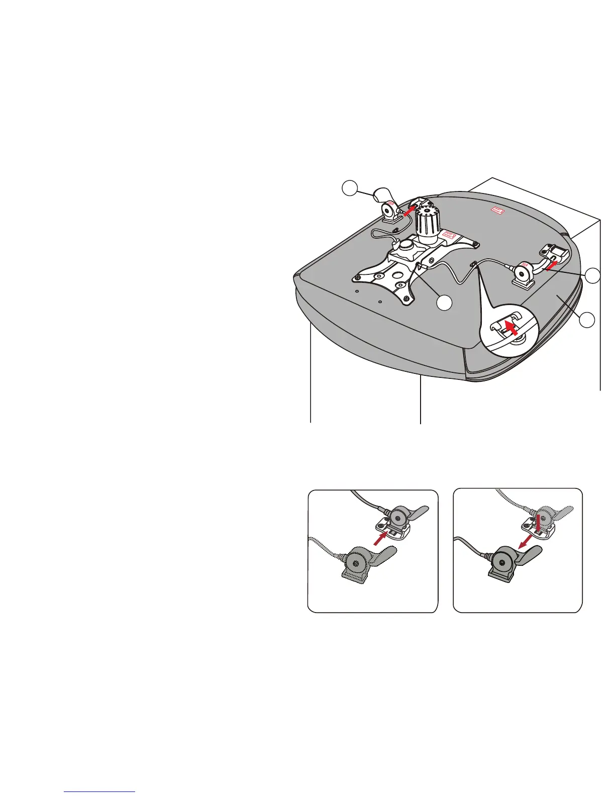 Insert Levers (D1 & D2) of Seat Plate (D) to the pre-attached