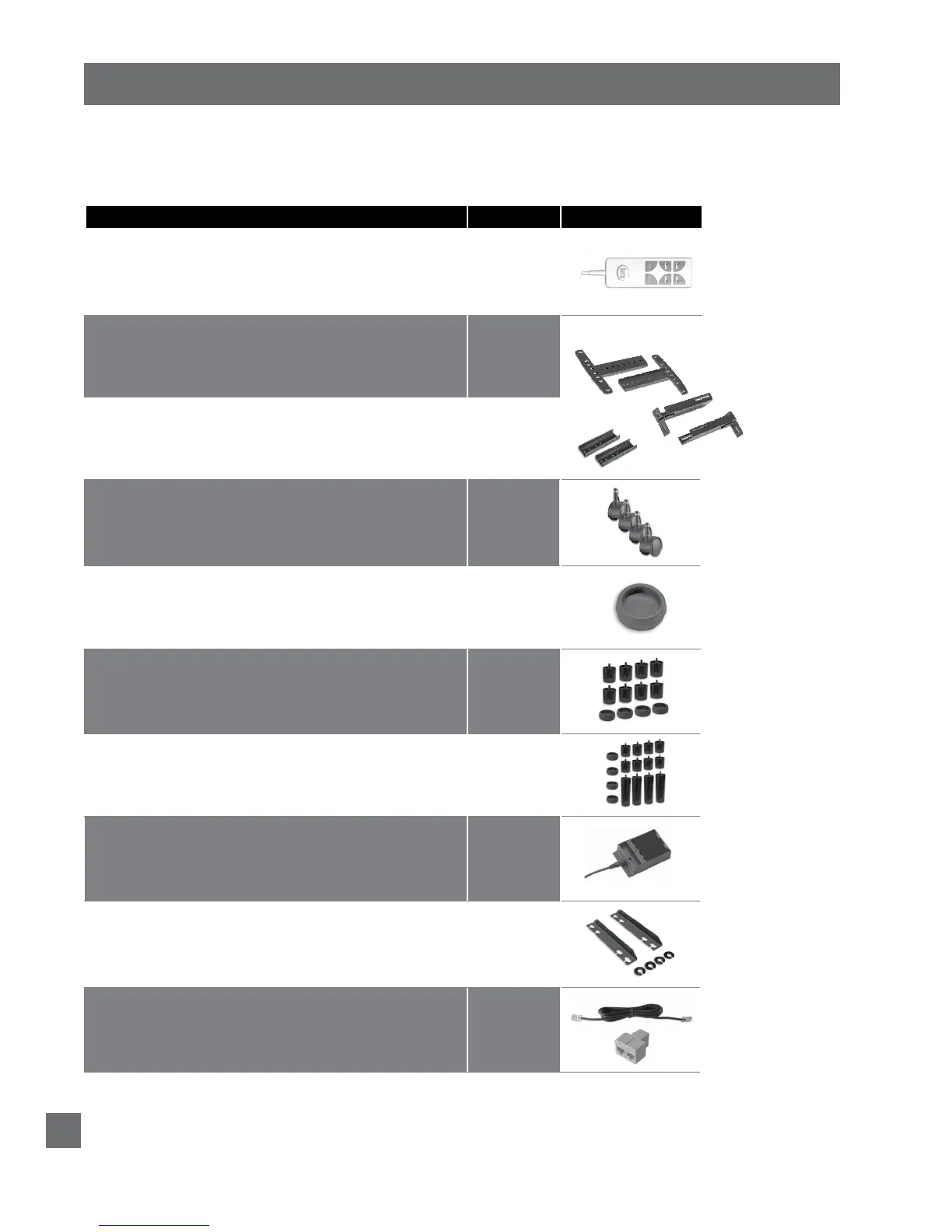 accesorios indicados en la siguiente tabla.