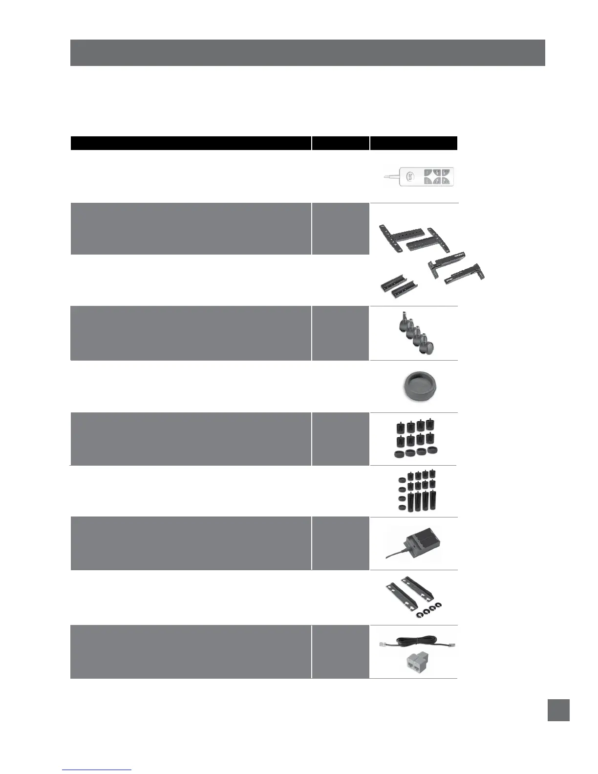 commander les accessoires indiqués dans le tableau ci-dessous.