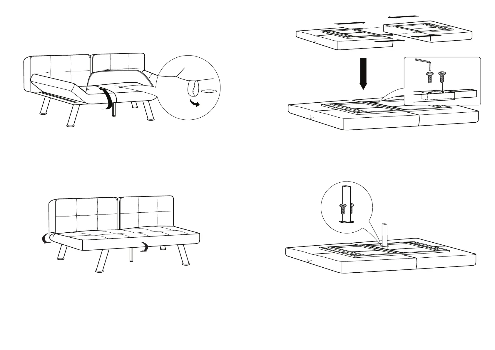 Repeat Step 7 for locating the pegs on the seat of sofa.