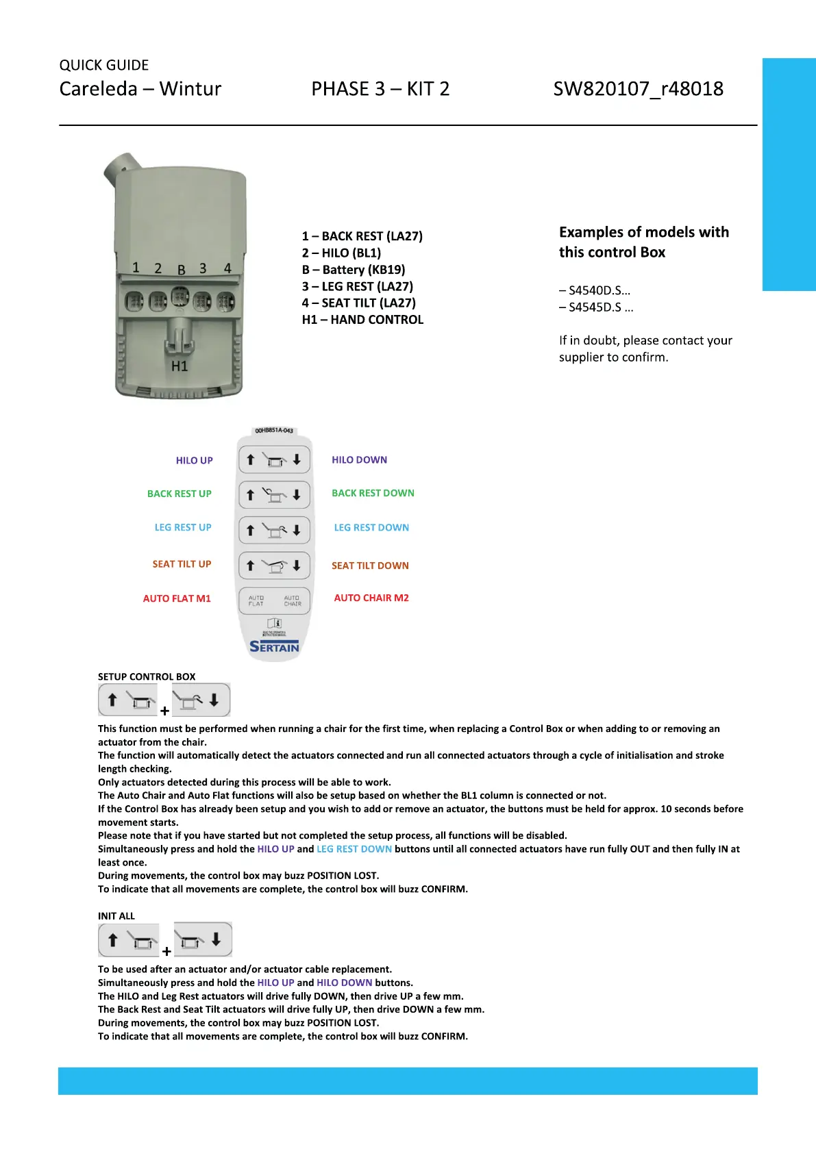 Sertain S4540 - QUICK GUIDE; Control Box Setup and Initialization; Initialize All Actuators