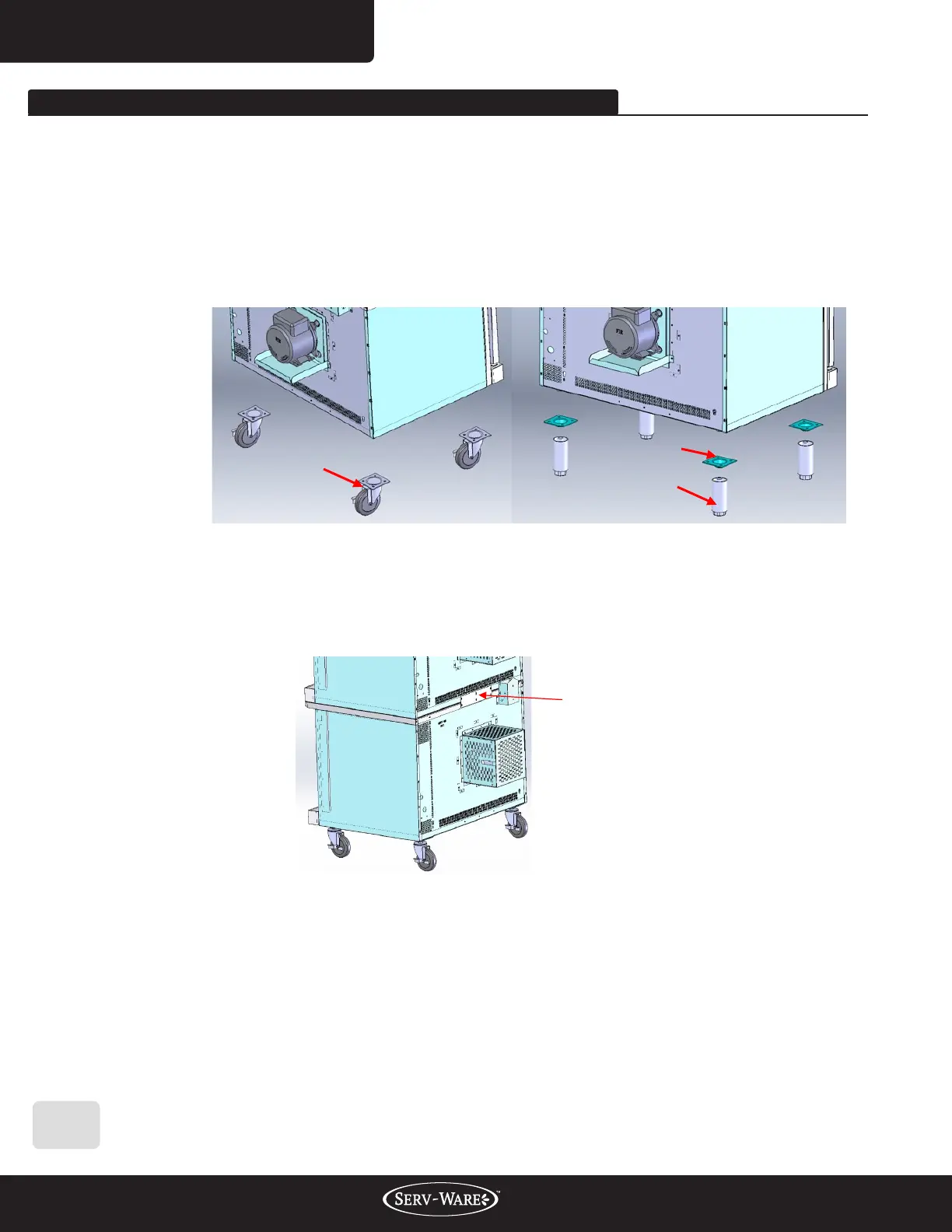 2. During stacking, replace the long leg with 6″ leg or caster as indicated in Fig.3: