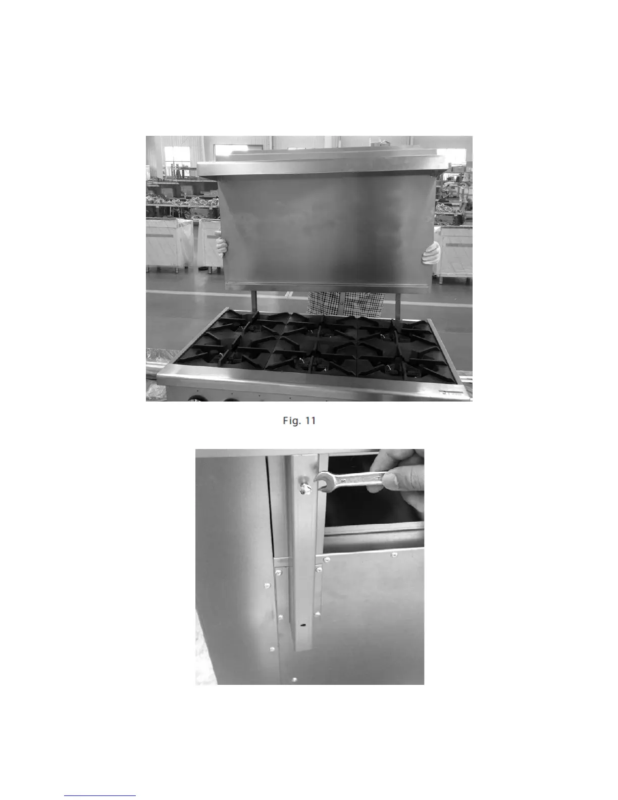 5. Install four #10 sheet metal screws (2 to each channel leg) (Fig. 12).