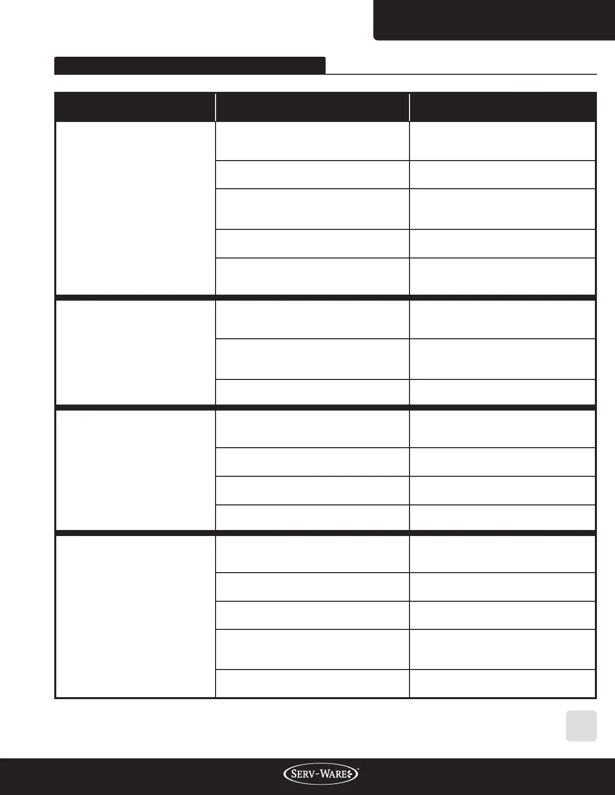TROUBLESHOOTING CHART
