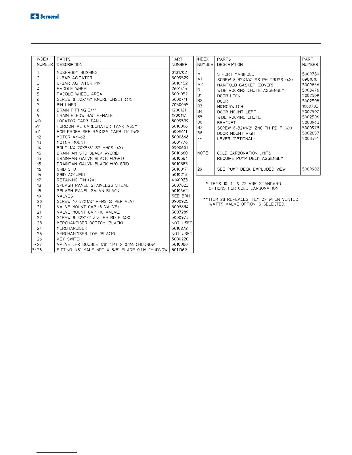 Servend MD 250 - MD 200;250 Parts List