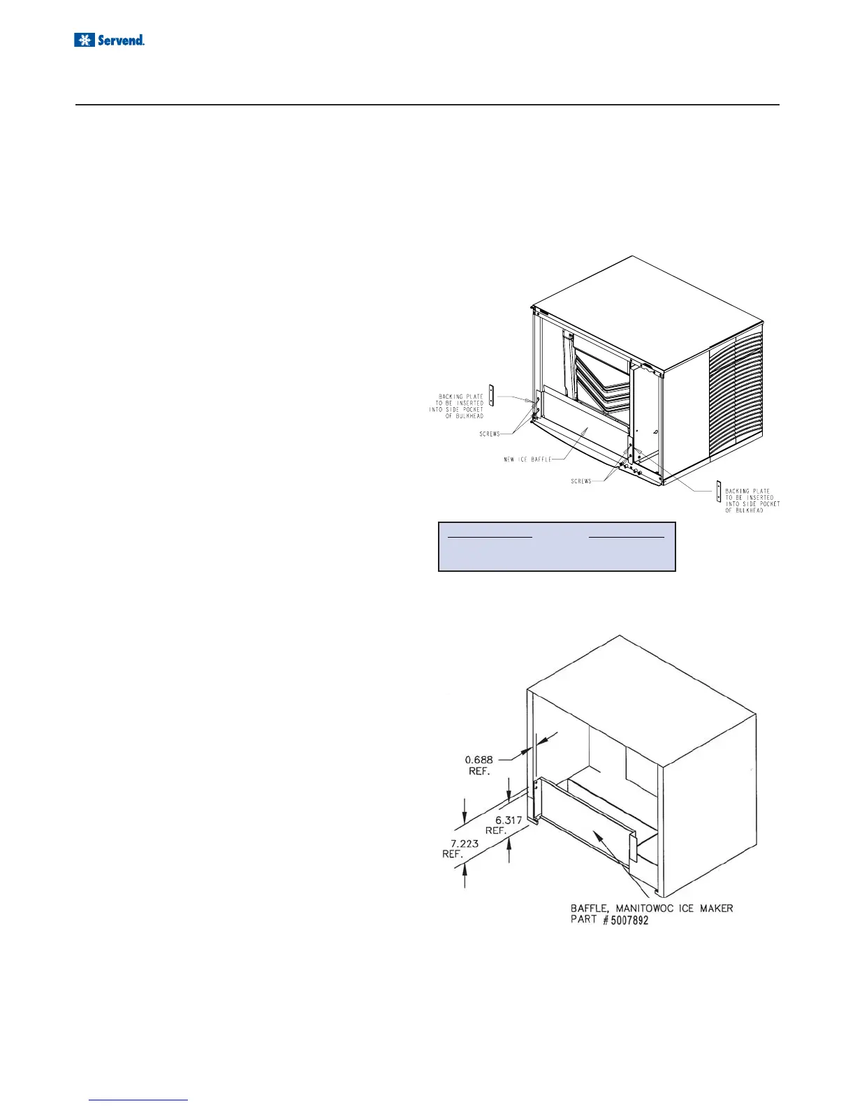 proper installation. The baffle kit is designed to prevent ice from lying against the front of the ice machine, and