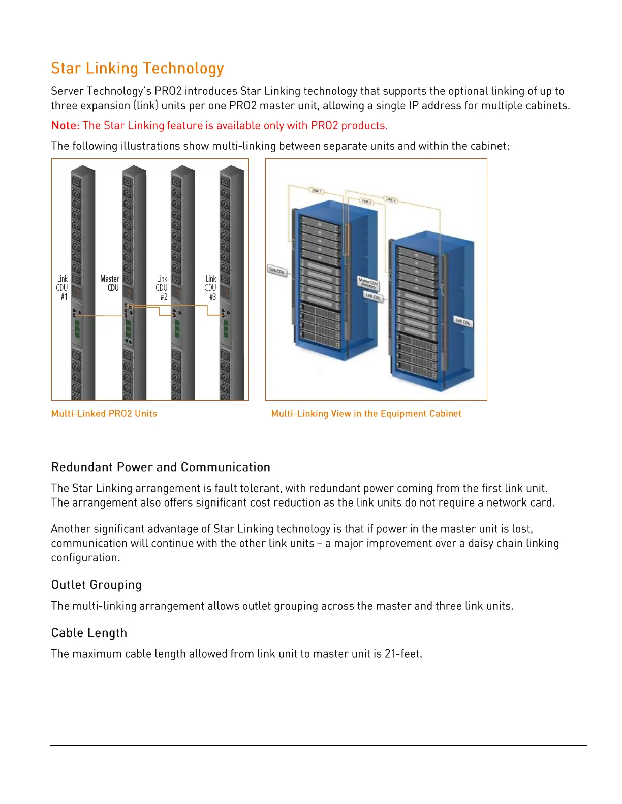Server Technology PRO2 - Star Linking Technology; Redundant Power and Communication; Outlet Grouping; Cable Length