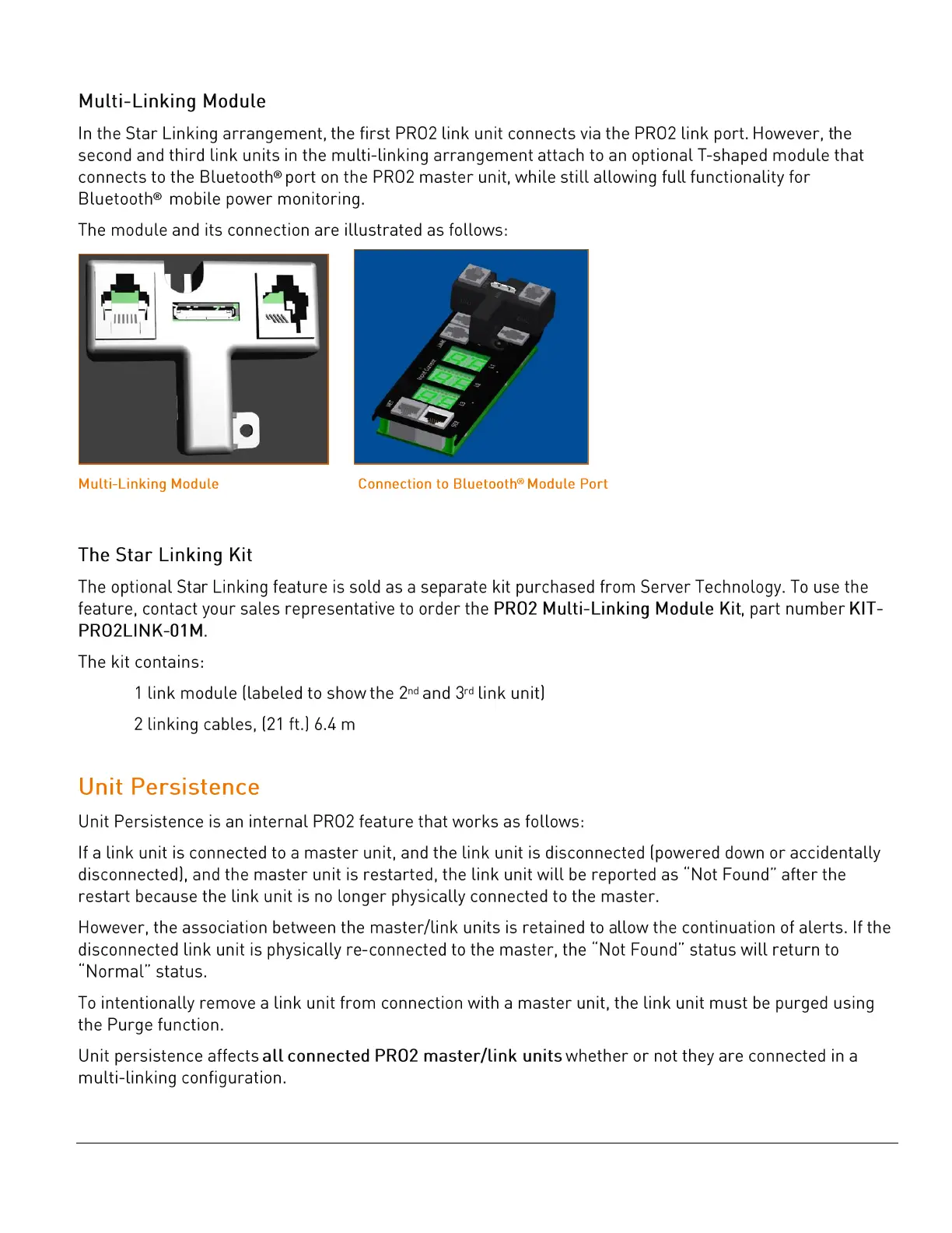 Server Technology PRO2 - Multi-Linking Module; The Star Linking Kit; Unit Persistence