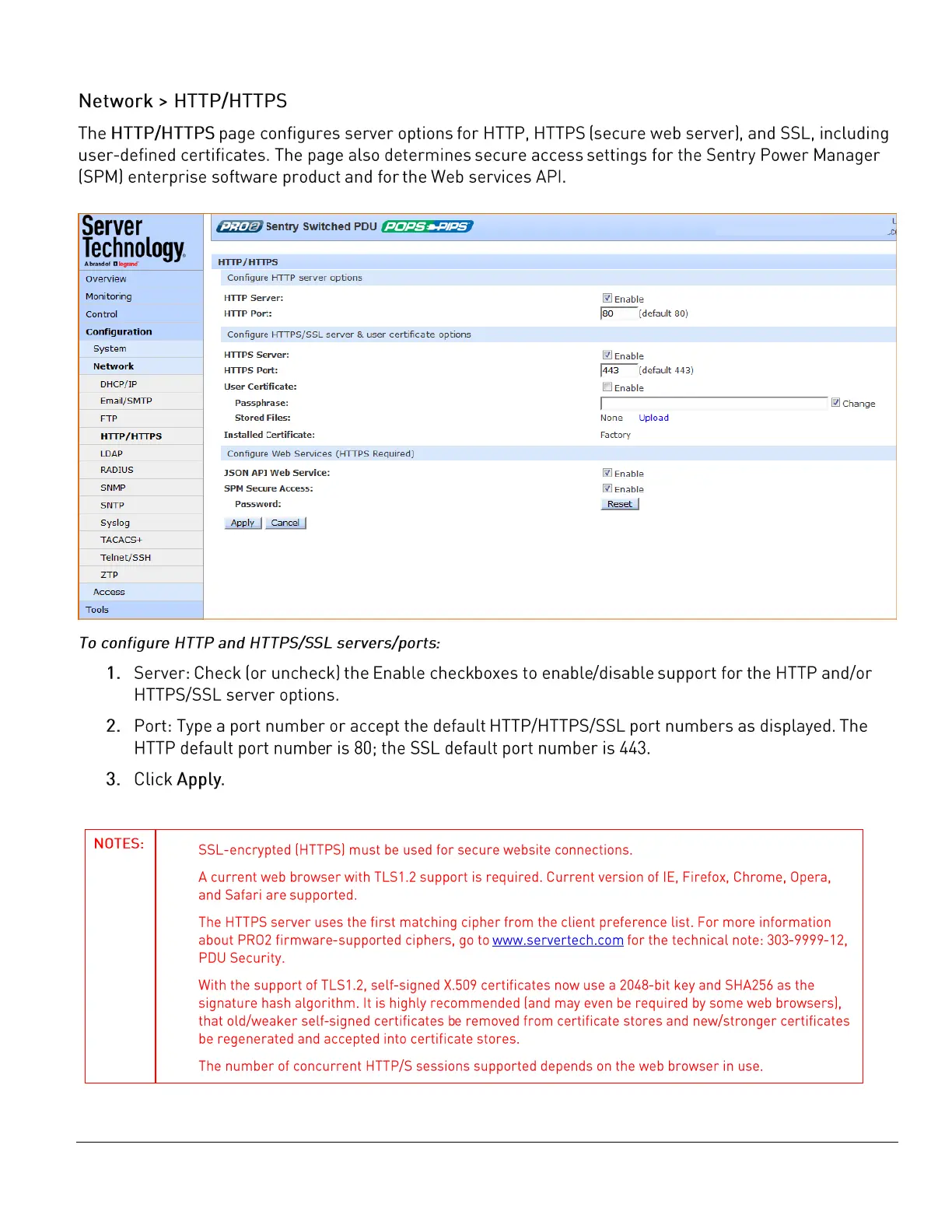 Server Technology PRO2 - Network > HTTP;HTTPS; To configure HTTP and HTTPS;SSL servers;ports: