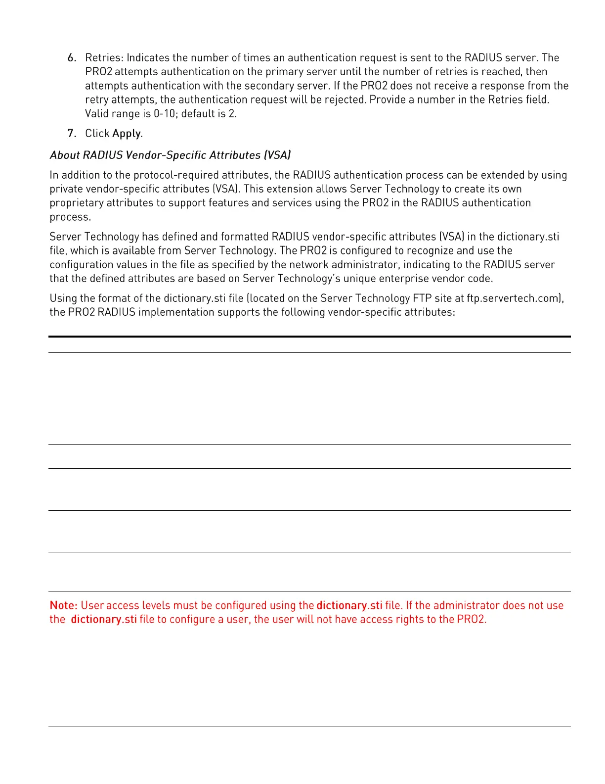 STI-Access-Level Indicates user access level for the Switched PRO2; values are 1-6 as follows; a valid access level is required or access to