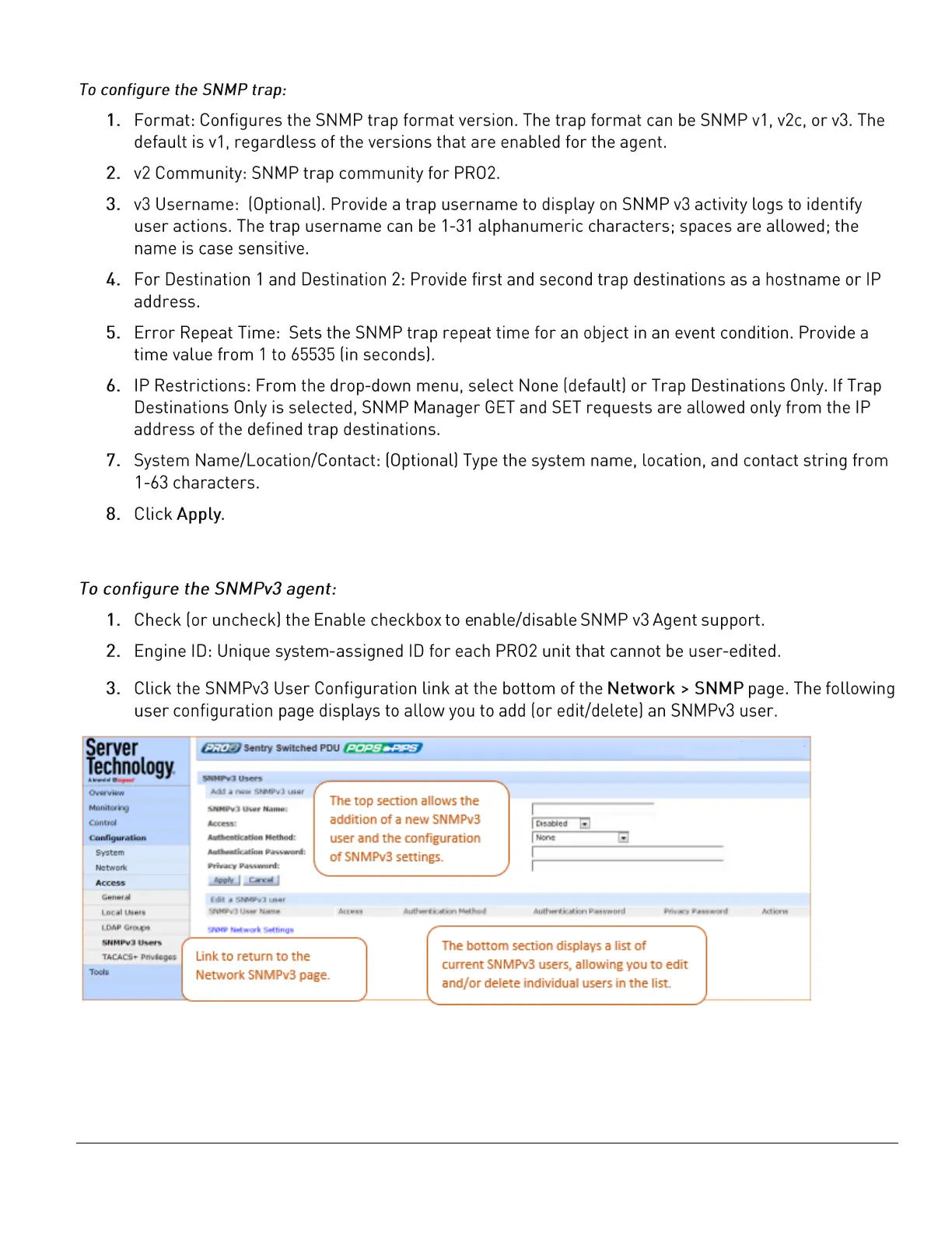 Server Technology PRO2 - To configure the SNMP trap: