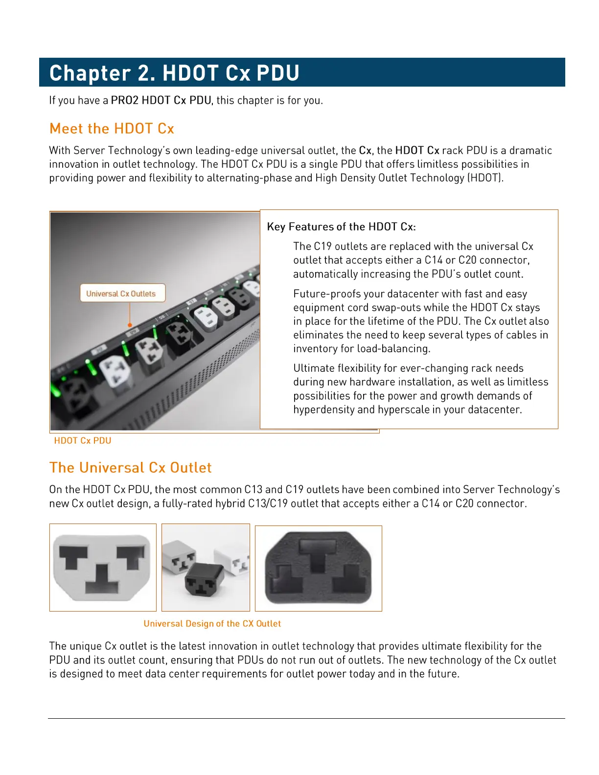 Server Technology PRO2 - Chapter 2. HDOT Cx PDU; Meet the HDOT Cx; The Universal Cx Outlet