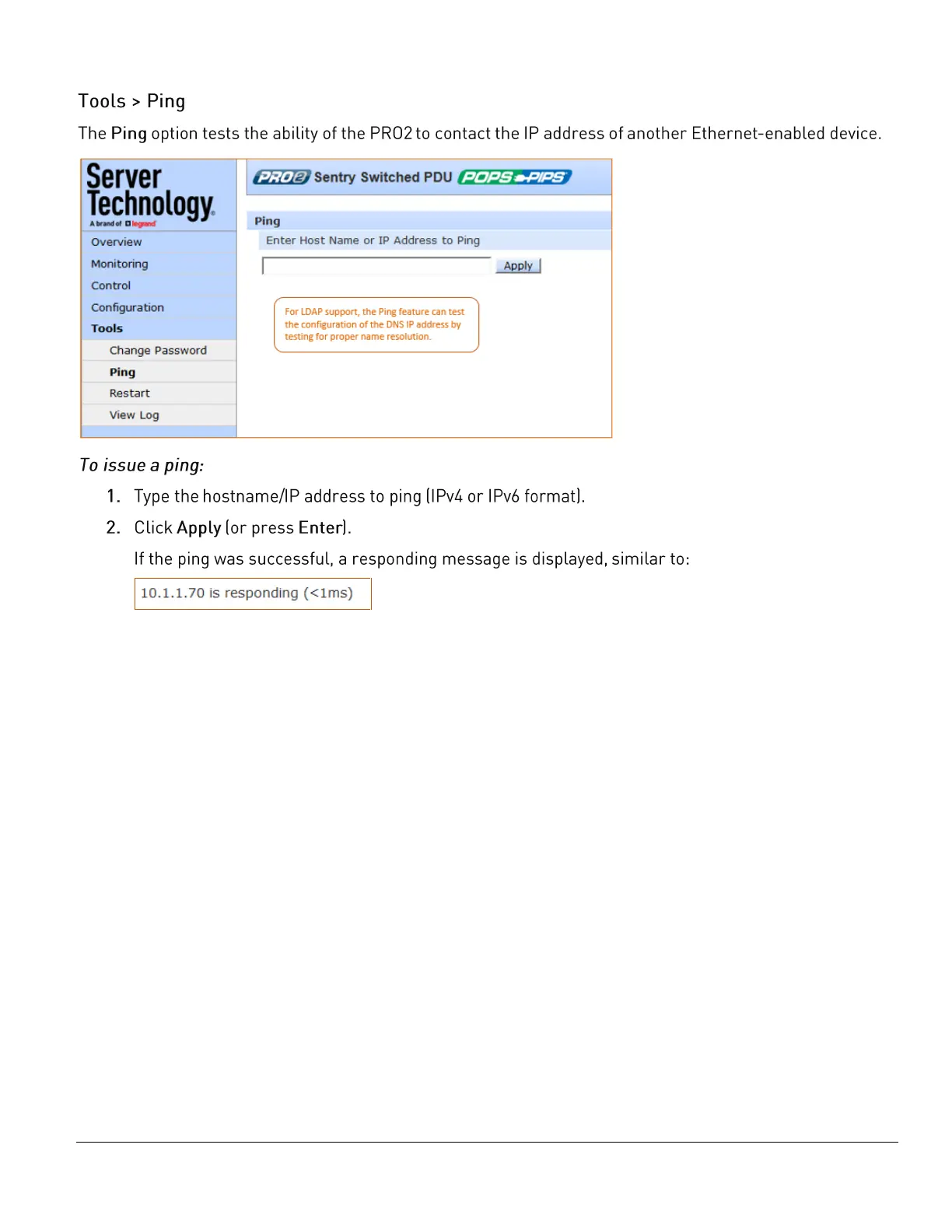 Server Technology PRO2 - Tools > Ping