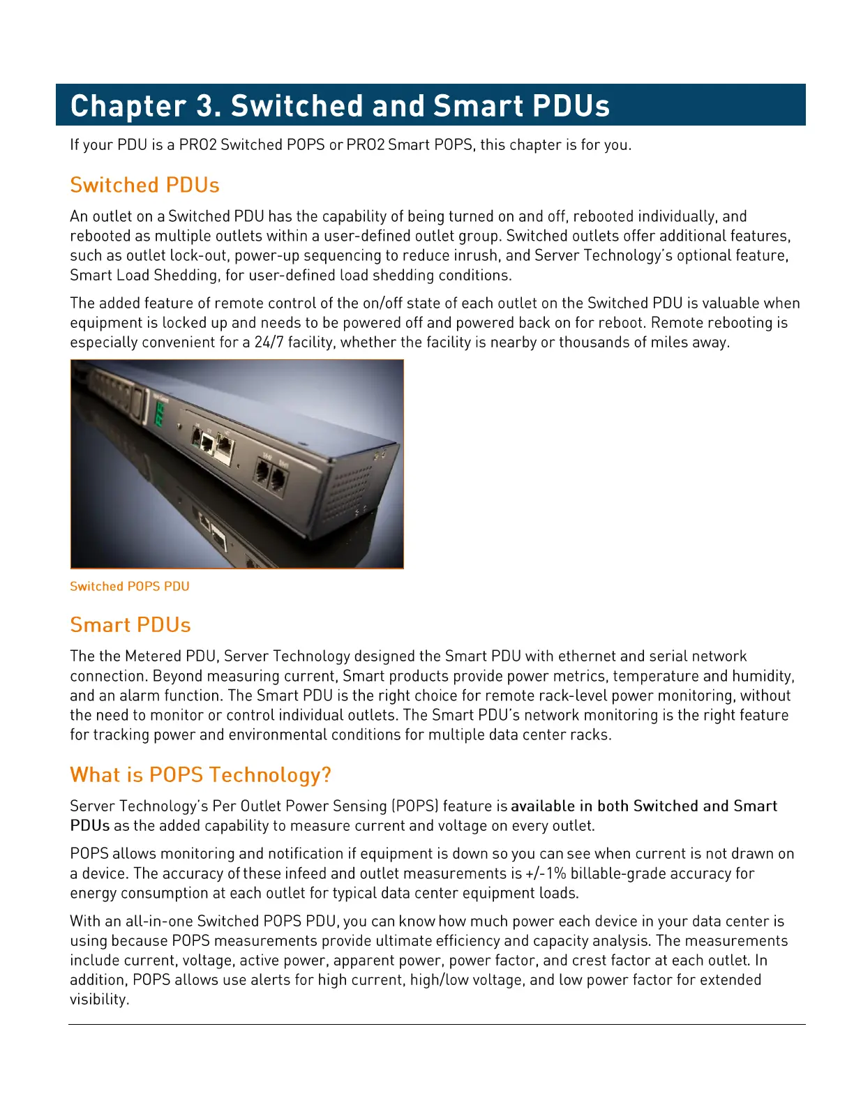 Server Technology PRO2 - Chapter 3. Switched and Smart PDUs; Switched PDUs; Smart PDUs; What is POPS Technology?