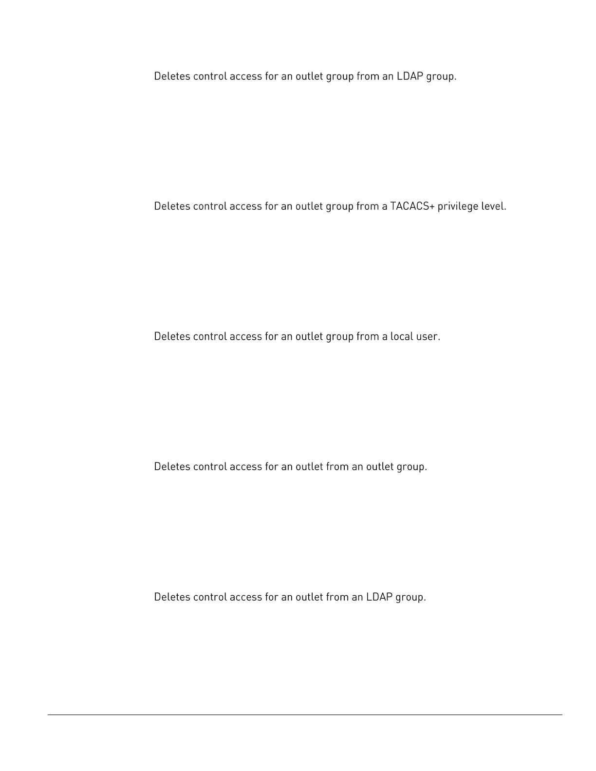 delete outletfromldap <outlet name | id | ALL> <LDAP group name>