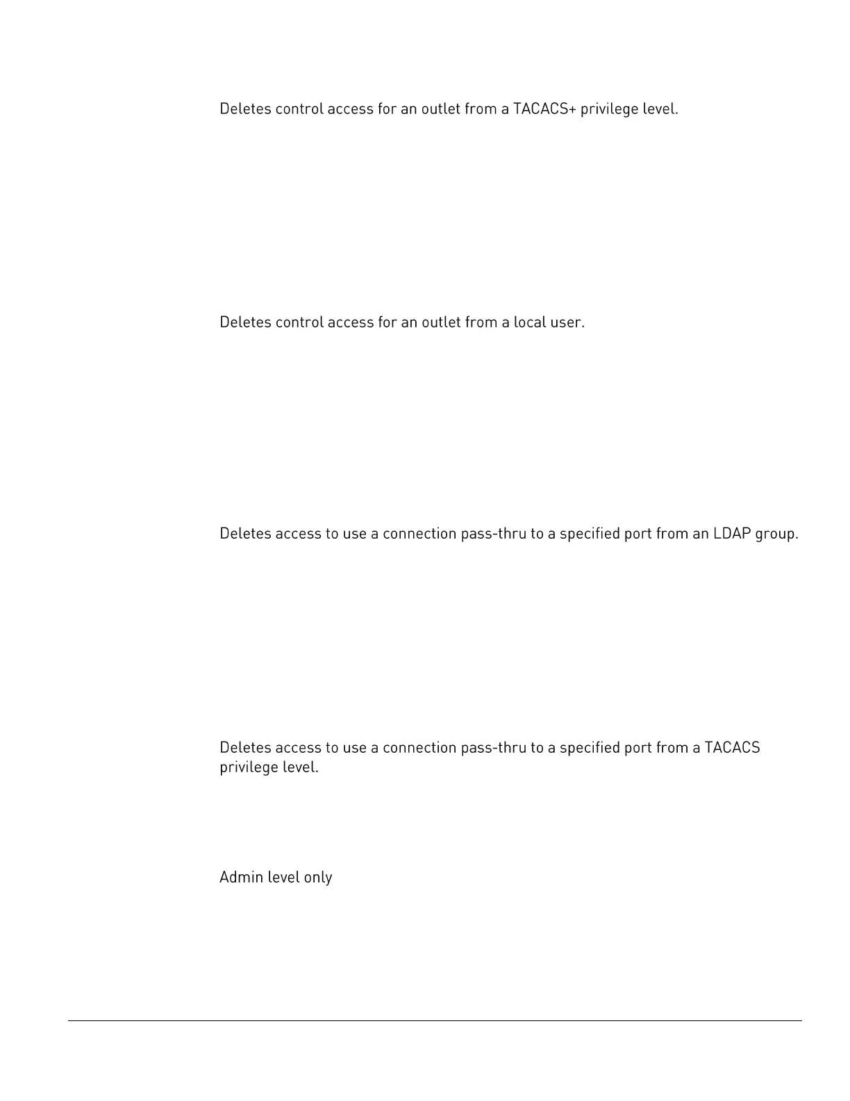delete outletfromtacacs <outlet name | id | ALL> <TACACS+ privilege level>