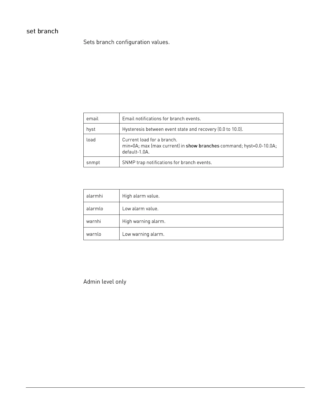 set branch load [alarmhi | alarmlo | warnhi | warnlow] <name | id | ALL> <value>