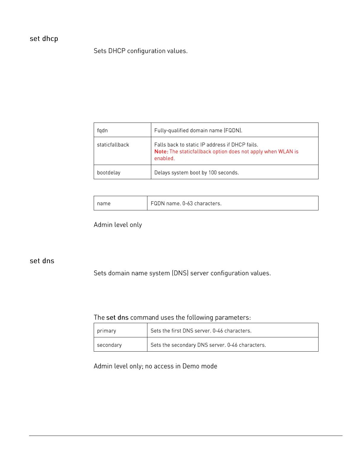 The set dhcp command uses the following parameters: