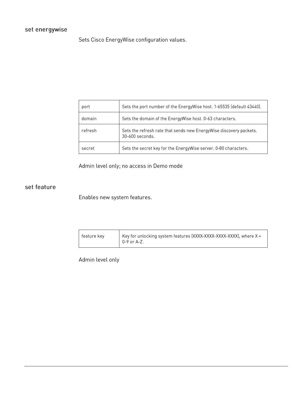 The set feature command uses the following parameter: