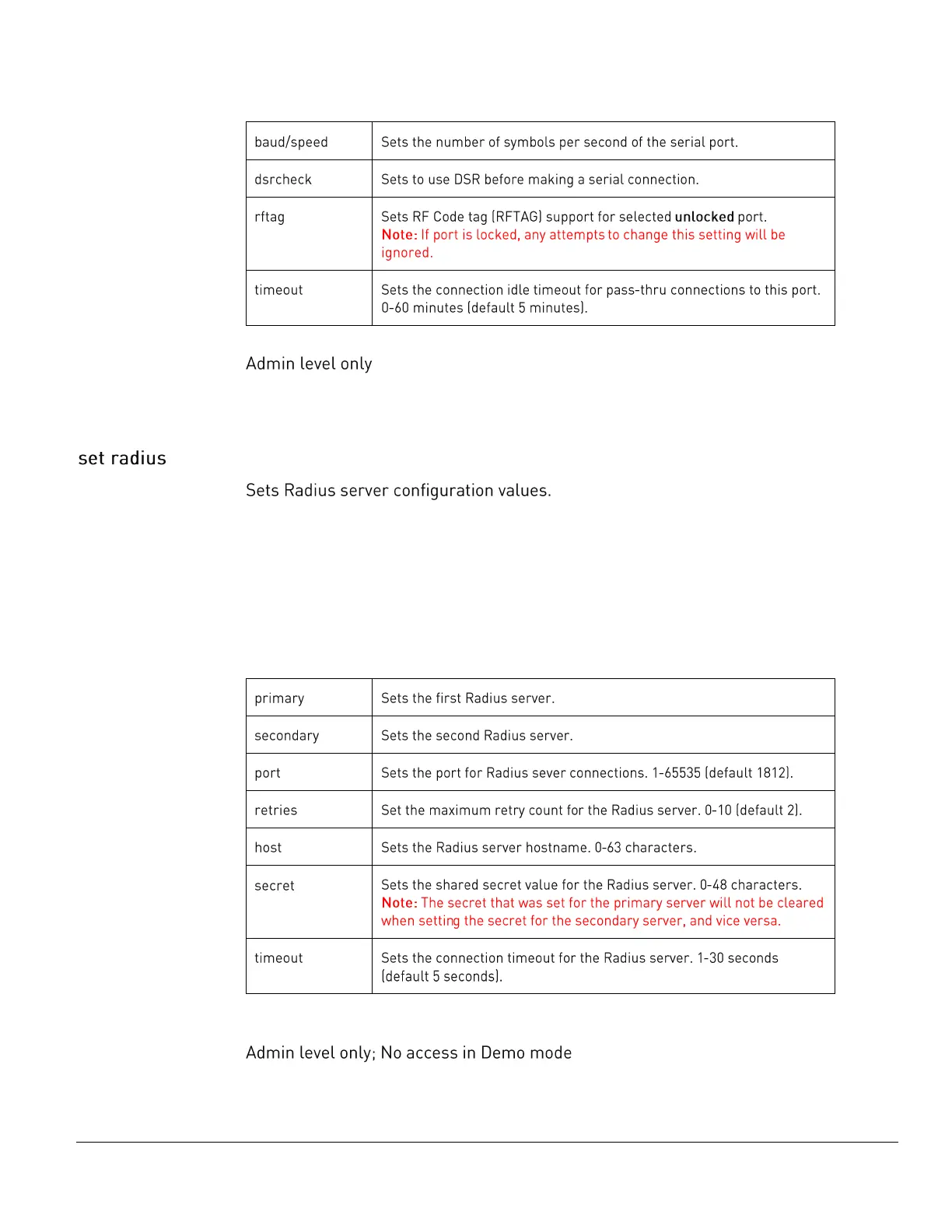 set radius [primary | secondary] port <port>