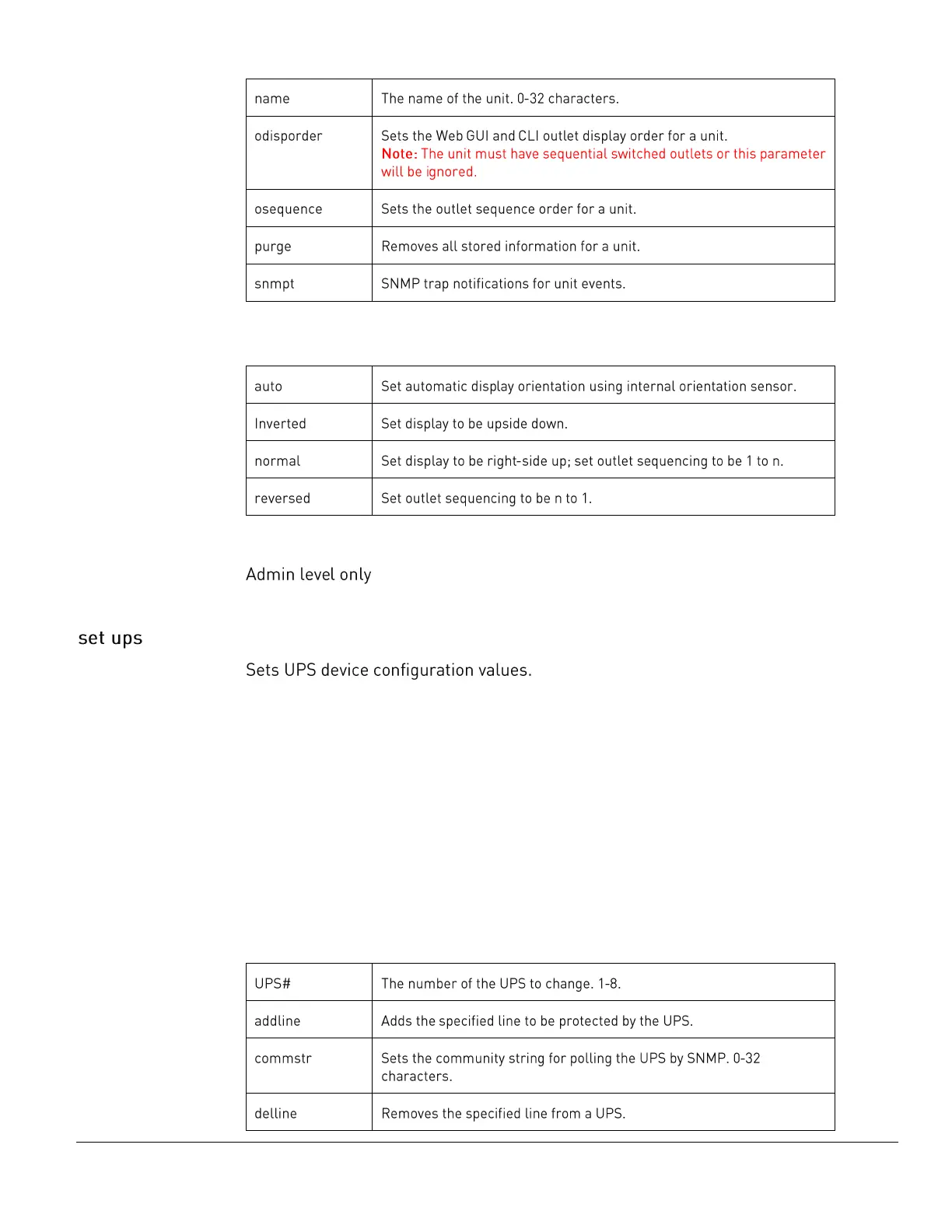 The set unit command uses the following sub-parameters: