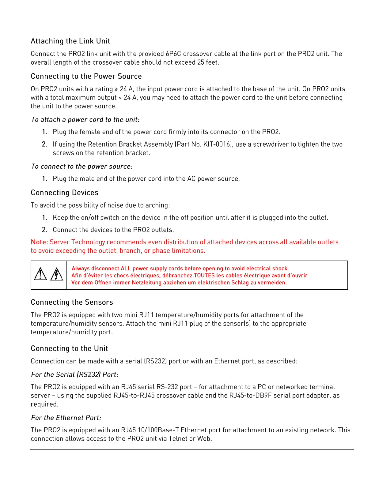 Server Technology PRO2 - Attaching the Link Unit; Connecting to the Power Source; To attach a power cord to the unit:; To connect to the power source: