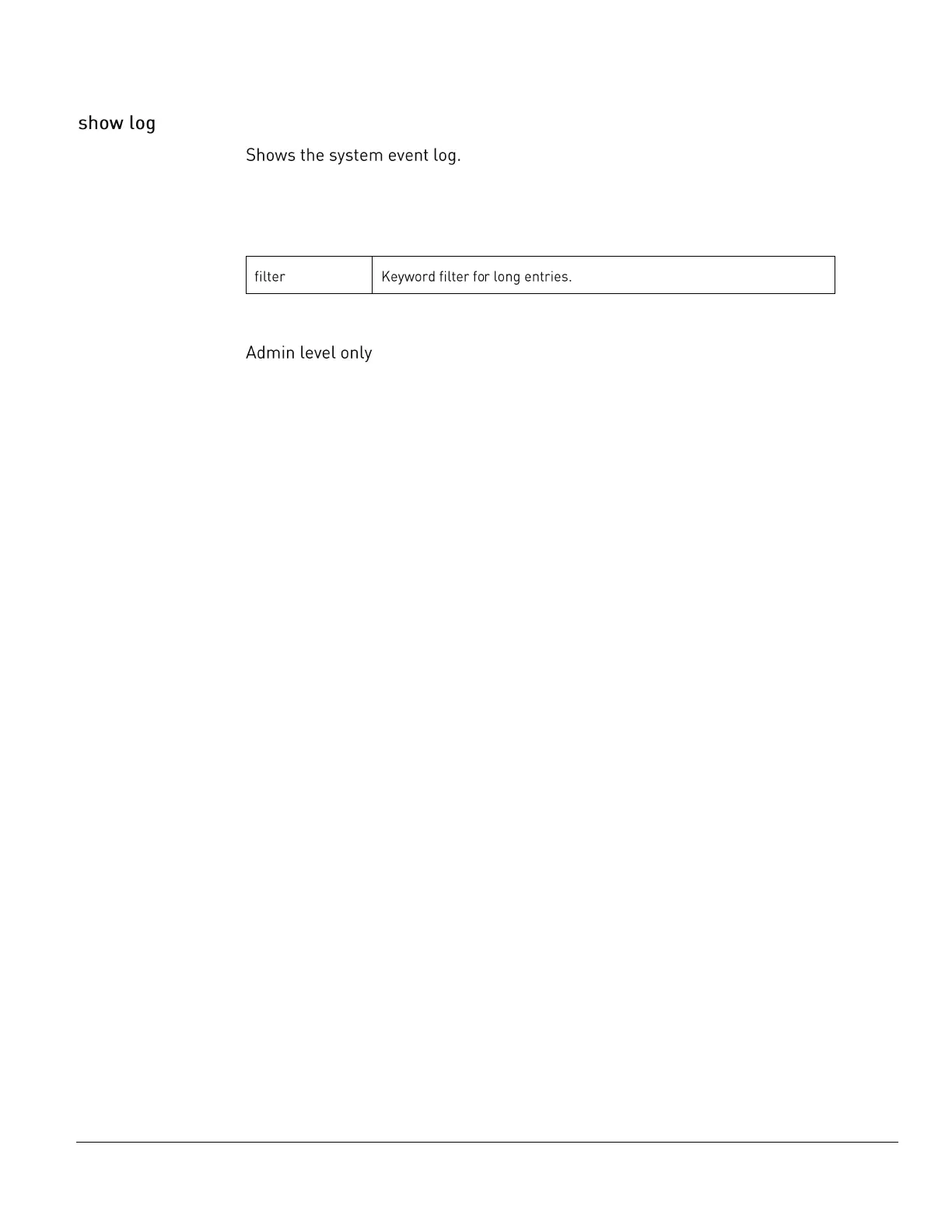 The show log command uses the following parameter: