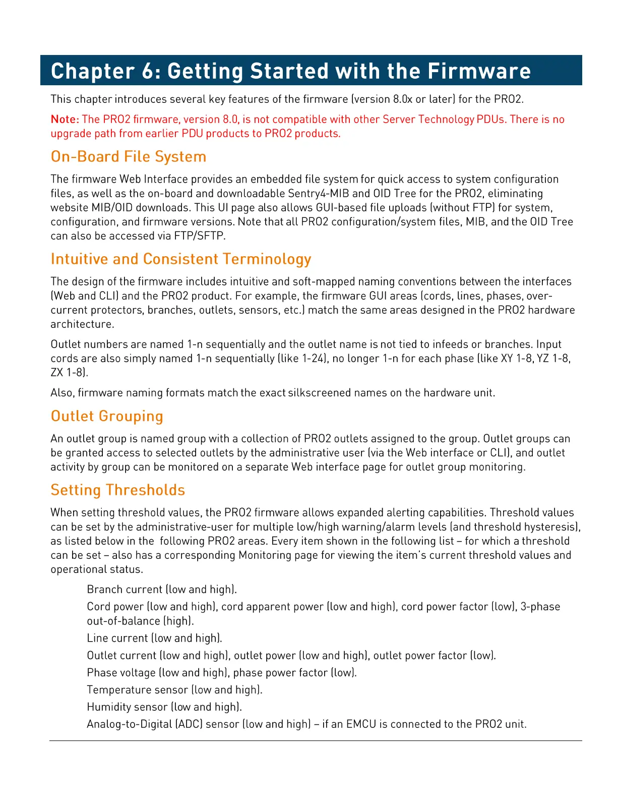 Server Technology PRO2 - Chapter 6: Getting Started with the Firmware; On-Board File System; Intuitive and Consistent Terminology; Outlet Grouping