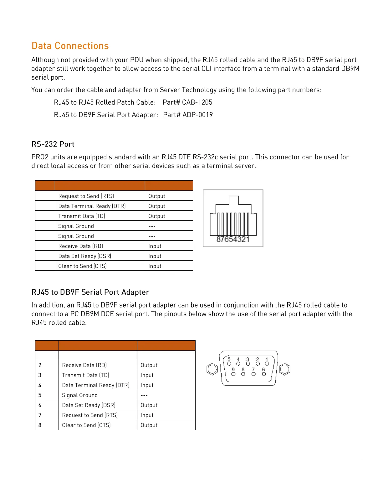 Server Technology PRO2 - Data Connections; RS-232 Port; RJ45 to DB9 F Serial Port Adapter