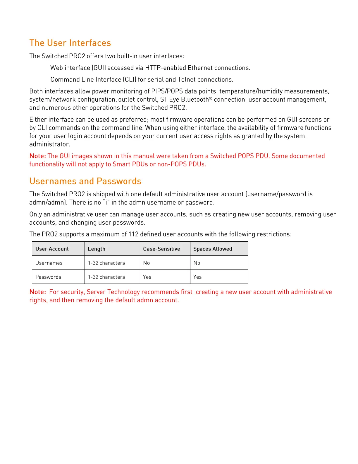 Server Technology PRO2 - The User Interfaces; Usernames and Passwords