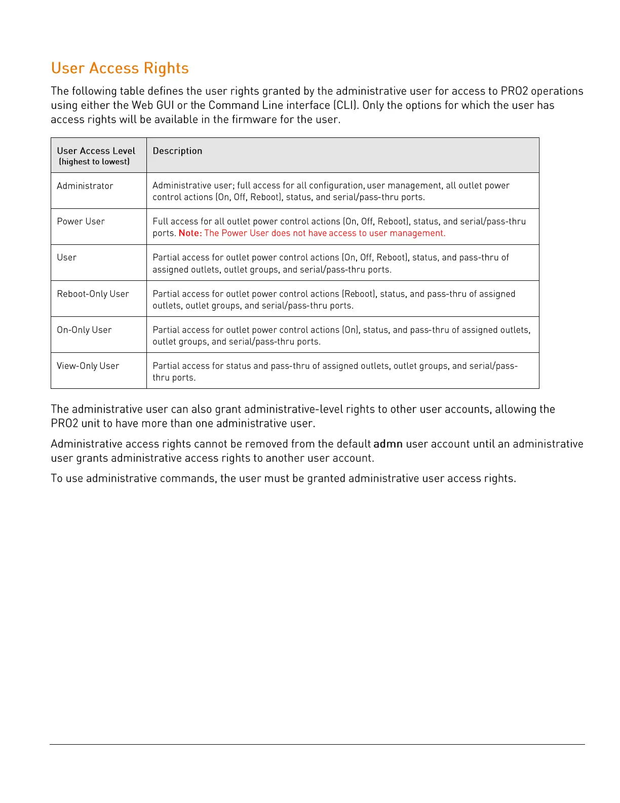 Server Technology PRO2 - User Access Rights