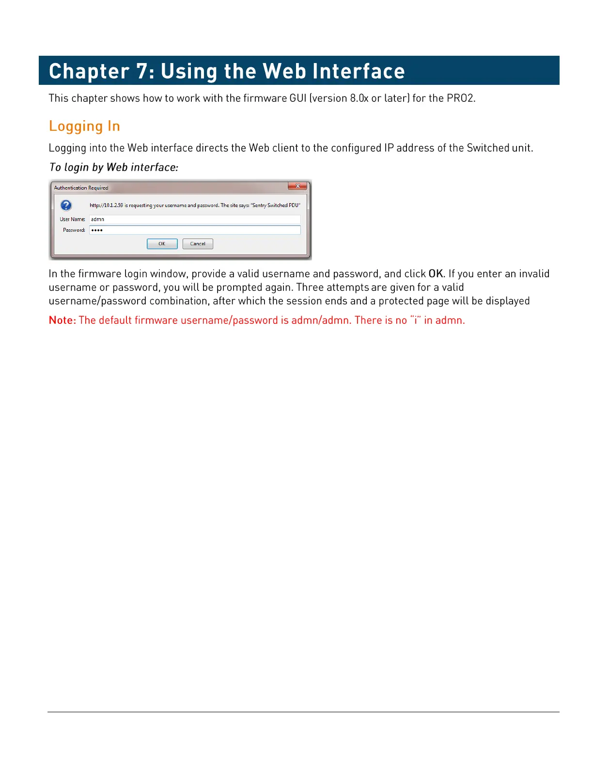 Server Technology PRO2 - Chapter 7: Using the Web Interface; Logging In