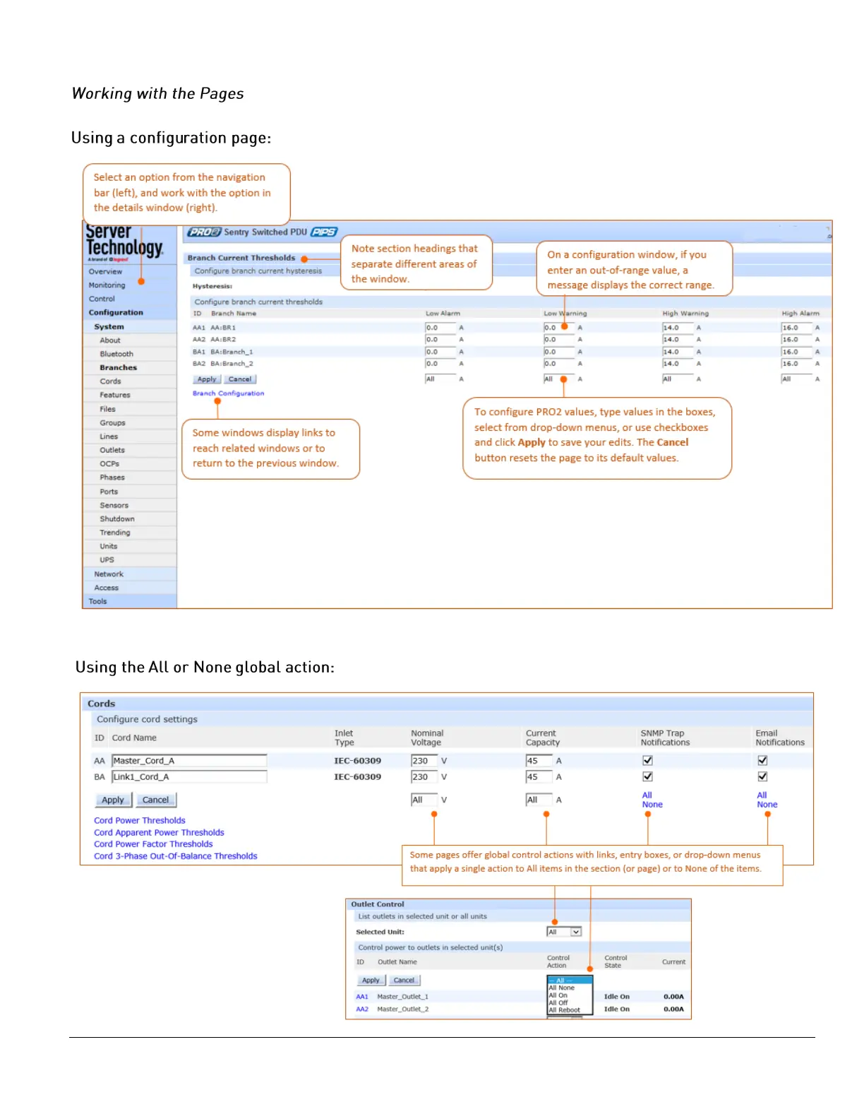 Server Technology PRO2 - Working with the Pages