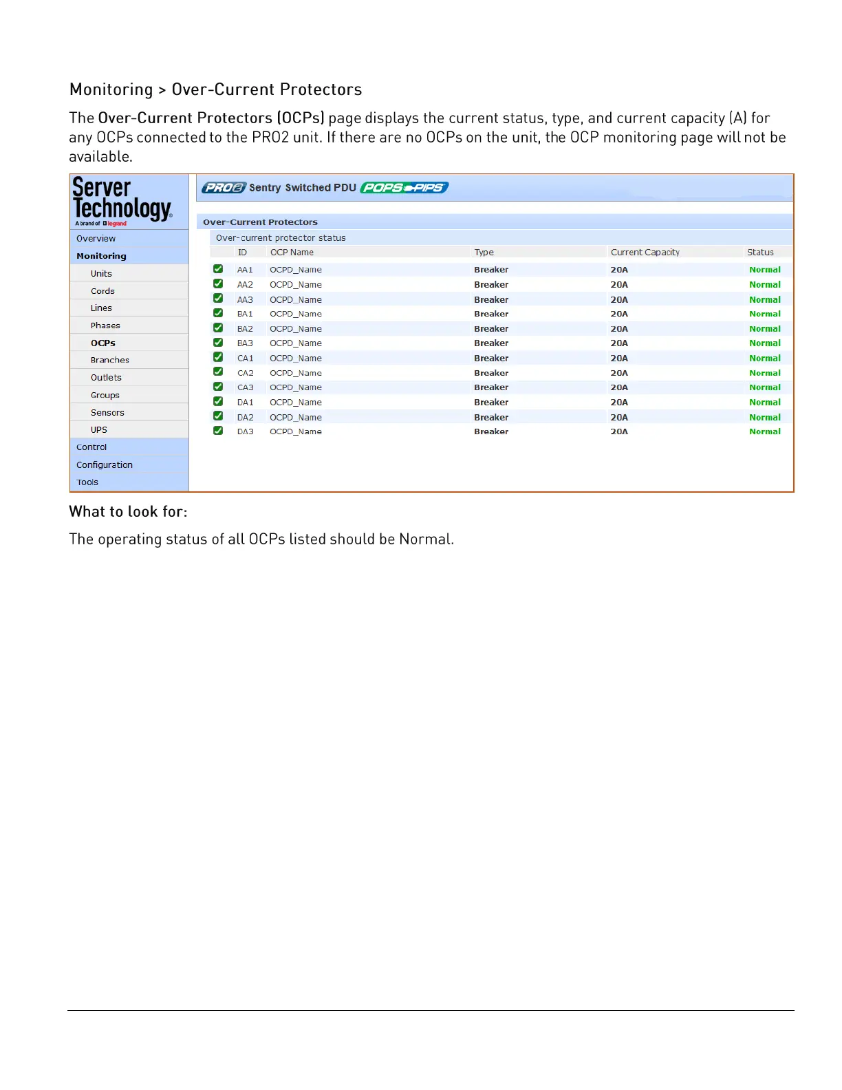 Server Technology PRO2 - Monitoring > Over-Current Protectors