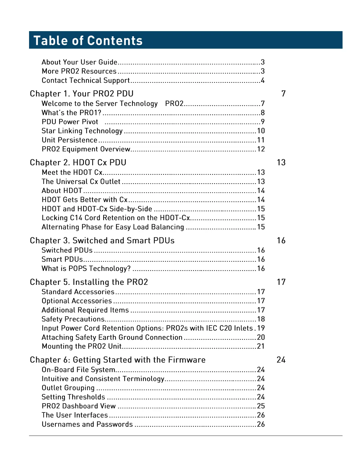 Server Technology PRO2 - Table of Contents